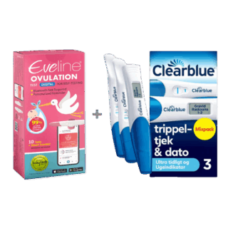 Med et samlet testsæt fra Clearblue får du alt du skal bruge i forbindelse med planlægningen af din graviditet. Du kan enten vælge at købe et testsæt bestående af Clearblue Advance fertilitetsmonitor og 20 stk. Advance testpenne, eller du kan vælge et pakketilbud og få 10 stks. Clearblue digitale ægløsningstest og 1 stk. Clearblue digital graviditetstest med ugeindikator. Med vores pakketilbud sparer du penge på graviditetstest og ægløsningstest fra Clearblue.