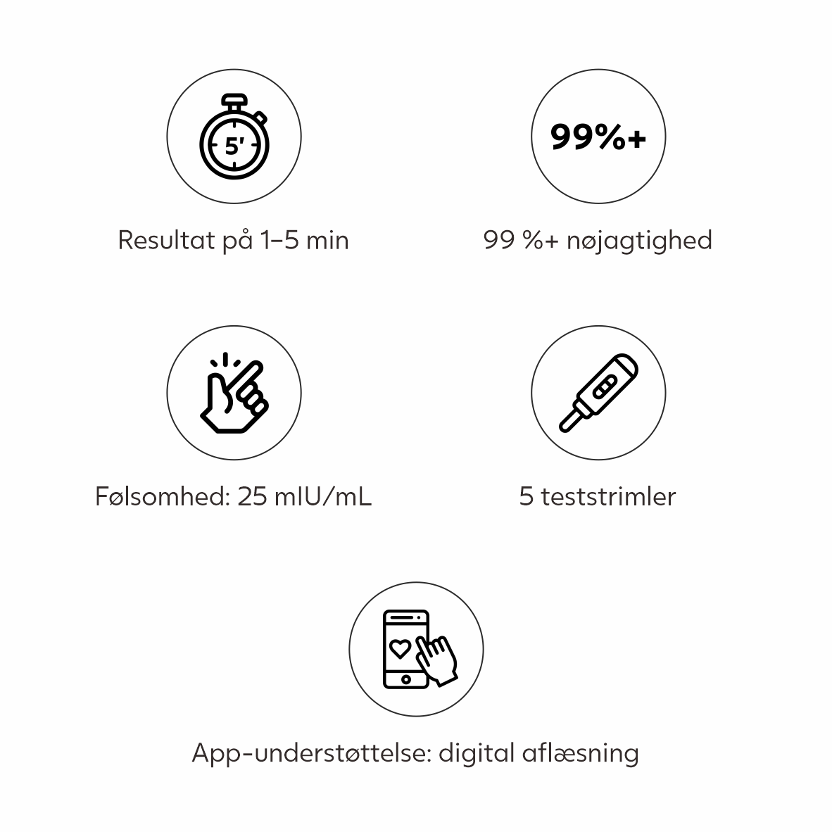 Du behøver ikke bruge appen for at aflæse testresultatet. Se brugsanvisningen for hvordan testen aflæses. Appen er blot designet til at hjælpe dig med at lave en tidsplan omkring ægløsningen, så du får de bedste chancer for at blive gravid. Appen giver dig også tips, påmindelser når det er tid til at teste og gemmer et foto af resultaterne af alle dine udførte test.